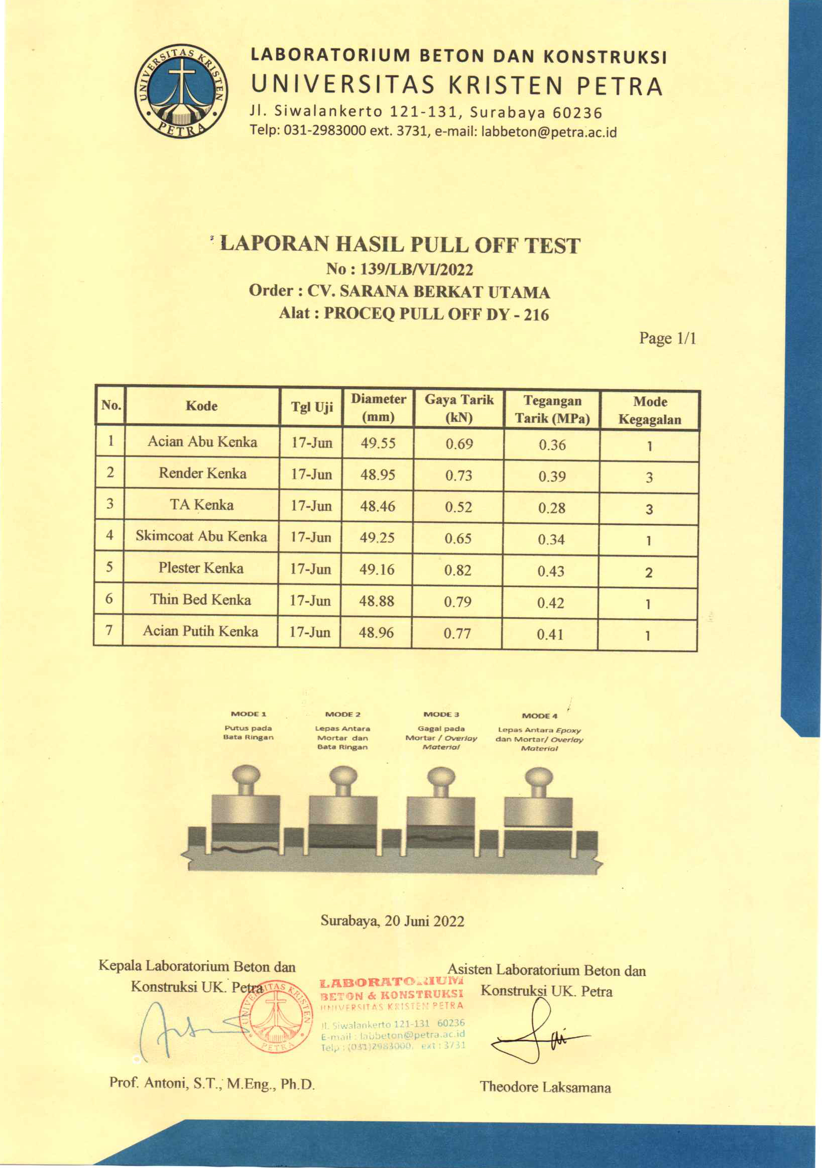 Hasil Pull Off Test Keunggulan Kenka Mortar